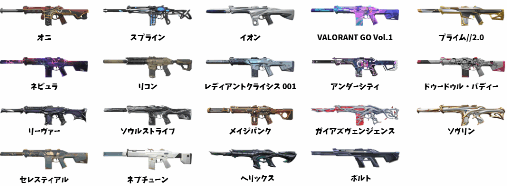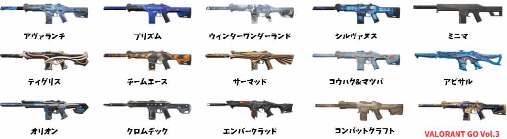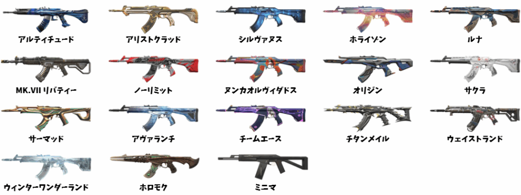 ナイトマーケットに並ぶ武器スキンは2Act以上前のものに限られています。