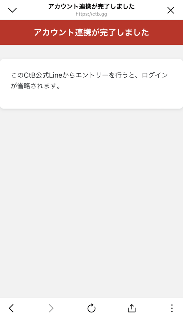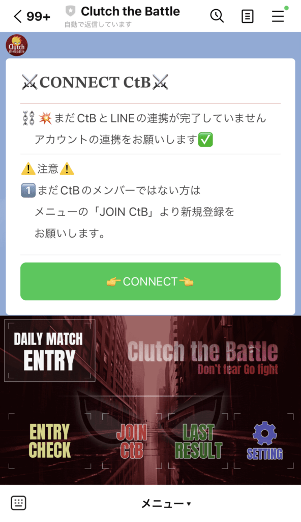 先ほどのメニューの中から「JOIN CtB」をタップするとこんなメッセージが!
