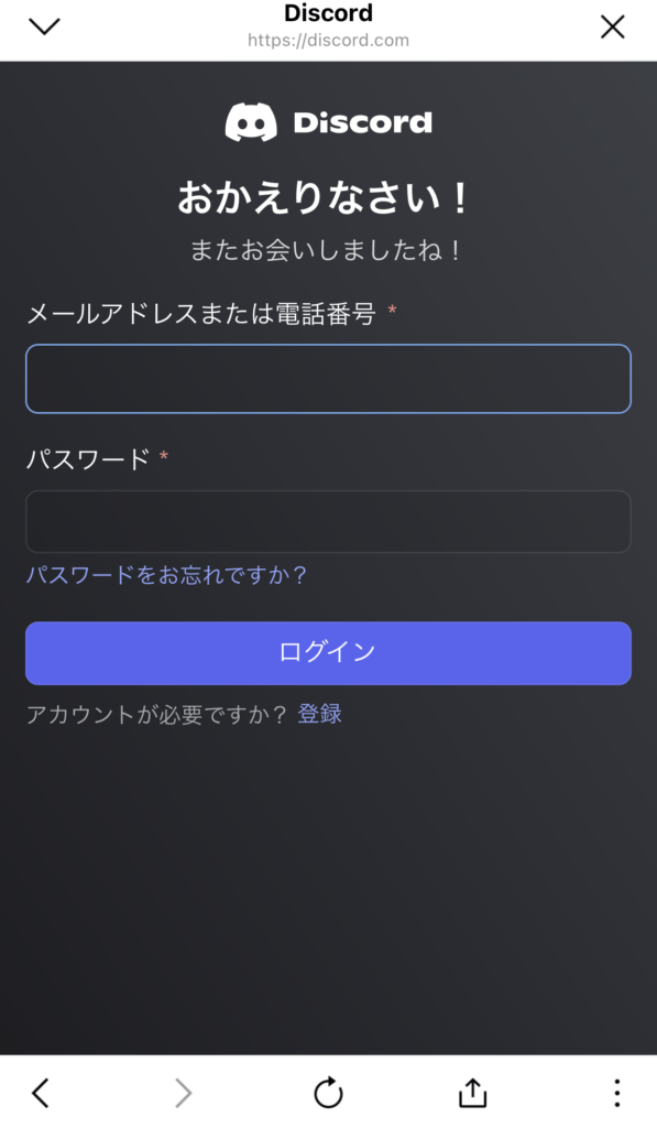 Discordに接続してメールアドレス登録、SMS認証で電話番号登録をすることでアカウントが作られます!